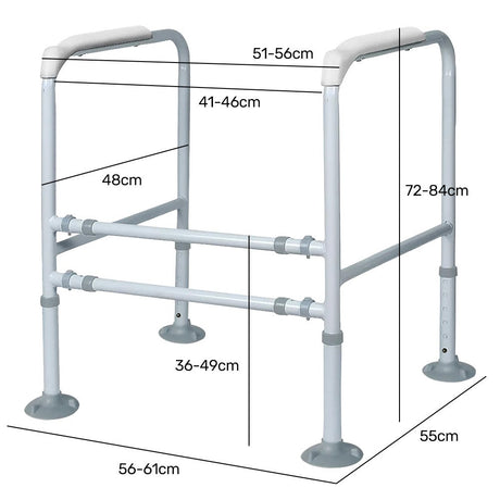 Equipmed Over Toilet Support Frame Safety Grab Aid Rail, 125kg Capacity, Adjustable Height and Width