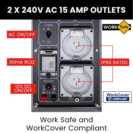 GENPOWER 4.2kW Peak 3kW Rated Generator Single-Phase Petrol - Site Portable