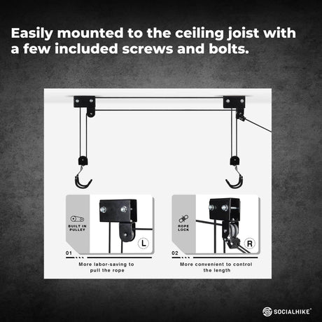Kayak Hoist - 45kg Garage Ceiling Pulley Lift Storage System Bike Luggage Holder