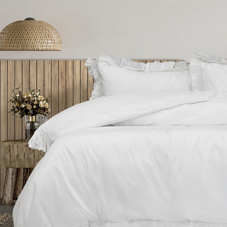 Algodon Adele White Cotton Ruffle Quilt Cover Set King