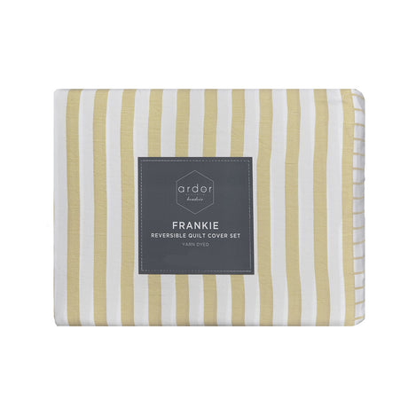 Ardor Frankie Yellow Stripe Yarn Dyed Reversible Quilt Cover Set Queen