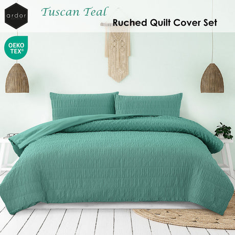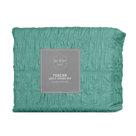 Ardor Tuscan Teal Ruched Quilt Cover Set Queen