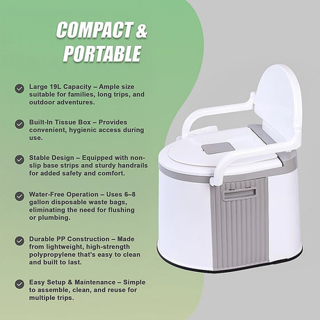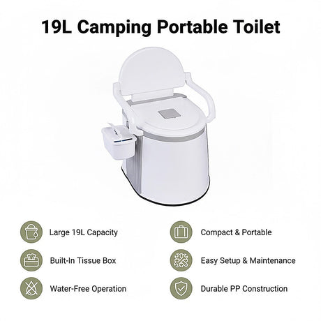 19L Camping Portable Toilet – Outdoor & Indoor Travel Commode Potty with Built-In Tissue Box