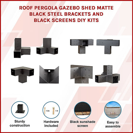 Roof Pergola Gazebo Shed Matte Black Steel Brackets and Black Screens DIY Kits