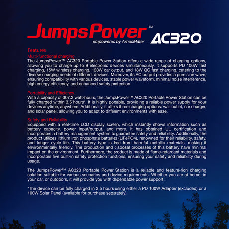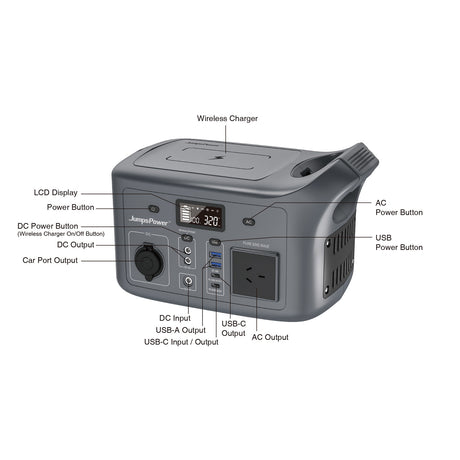 320W Portable Power Station JumpsPower Wireless Battery Charger 307Wh LED Light