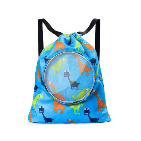 Blue Waterproof Drawstring Beach Bag L Size For Kids Wet & Dry Separation Shoulder Strap - Blue L