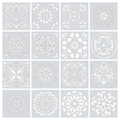 16 Pack Mandala Painting Stencils Drawing Dot Templates For Floor Wall DIY Decor