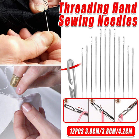 12PCS Easy Self Threading Hand Sewing Needles Assorted Sizes for DIY Stitching