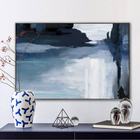 Abstract White Dream Canvas Art with Black Floating Frame - 90cm x 135cm