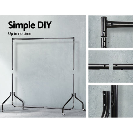 Artiss 2X Clothes Rack Airer Coat Stand 6FT Rail Wheels