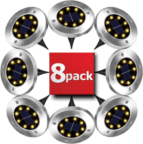 8 Pack LED Solar Pathway Lights Outdoor Solar Ground Lights (Warm White)