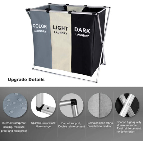 3 in 1 Large 135L Laundry Clothes Hamper Basket with Waterproof bags and Aluminum Frame (Multi)
