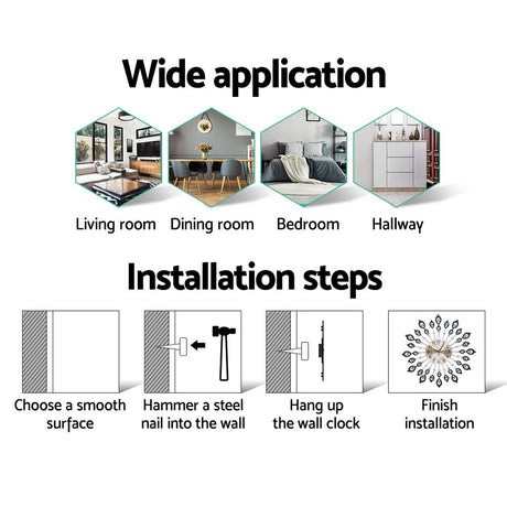 Artiss 60cm Wall Clock Large 3D Peacock Crystal Silver
