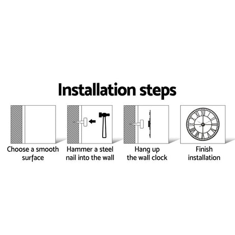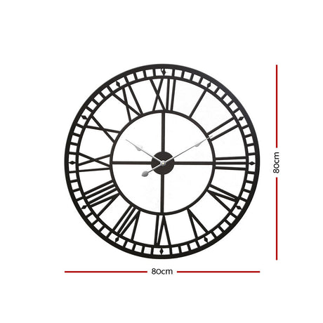 Artiss 80cm Wall Clock Large Roman Numerals Metal Black
