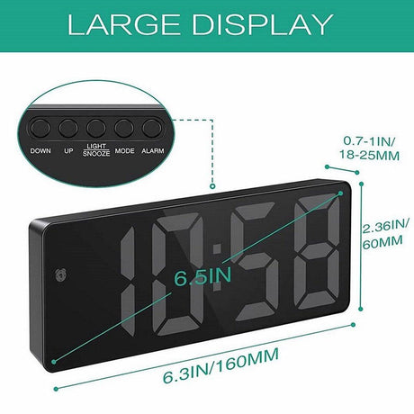 LED Digital Alarm Clock Large Display Dual Power Options Home Office Decor - White