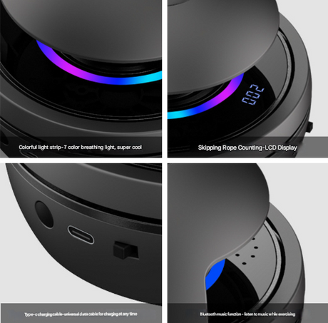 Pink Smart Electric Jump Rope Machine with Bluetooth Music, Remote Control & LED Lights