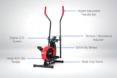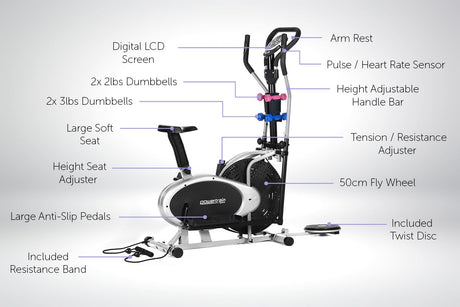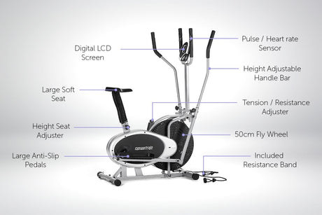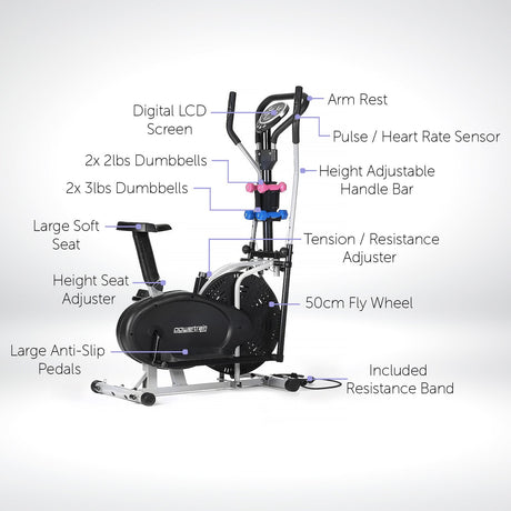 Powertrain 3-in-1 Elliptical Cross Trainer Exercise Bike with Resistance Bands