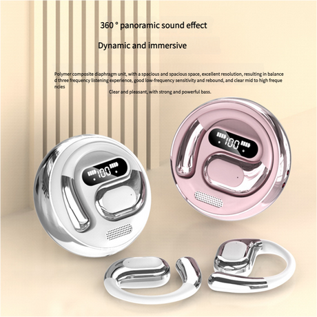 Open-Ear Conduction TWS Earbuds - Bluetooth 5.5, HIFI Sound, LED Display(pink)
