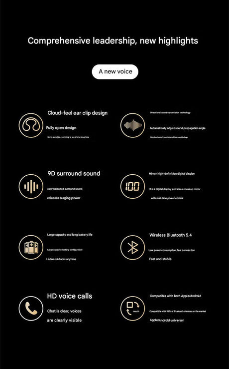 Open-Ear TWS Wireless Earbuds with HIFI Sound & LED Display - Dolby Surround(black)