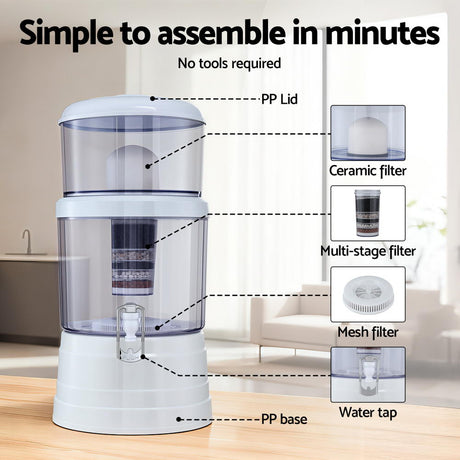 Devanti Benchtop Water Filter 24L Gravity Multi-Stage BPA-Free Home Camping