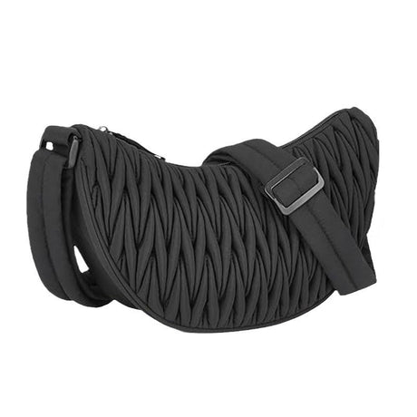 Black Chic Pleated Crescent Sling Bag - Water-Resistant Lightweight Crossbody & Shoulder Purse