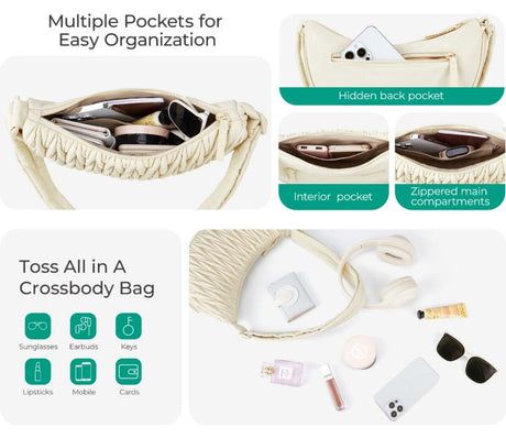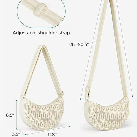 Beige Chic Pleated Crescent Sling Bag - Water-Resistant Lightweight Crossbody & Shoulder Purse
