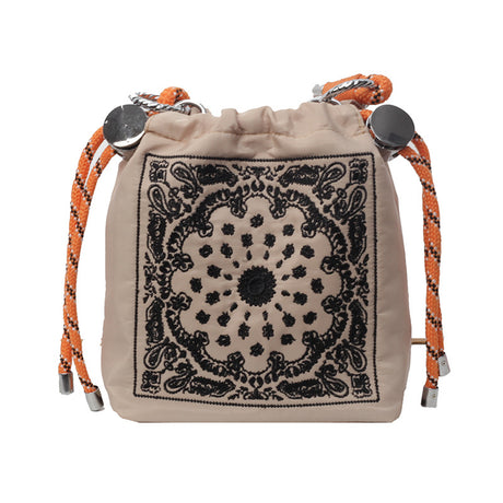 Chic Drawstring Bucket Bag with Intricate Print - Adjustable Rope Strap, Lightweight Fabric(Khaki)