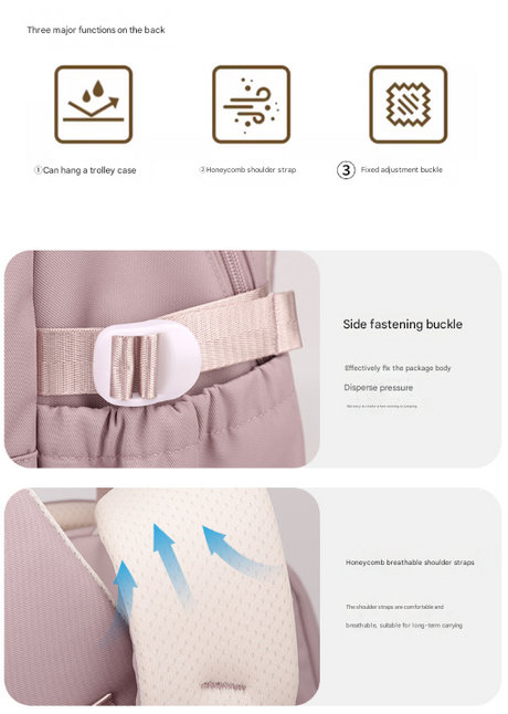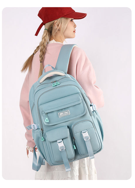 Pink Large Capacity Waterproof Student Backpack - Fits 15-Inch Laptop, Multi-Pocket Travel Daypack