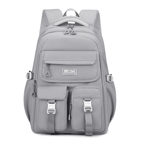Grey Large Capacity Waterproof Student Backpack - Fits 15-Inch Laptop, Multi-Pocket Travel Daypack