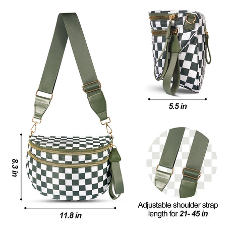 Beige Checkered Trendy Sling Bag - Women's Crescent Crossbody Purse with Wide Adjustable Strap