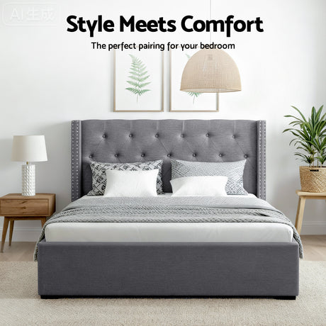 Artiss Queen Bed Frame Storage Tufted Headboard Gas Lift Base Grey