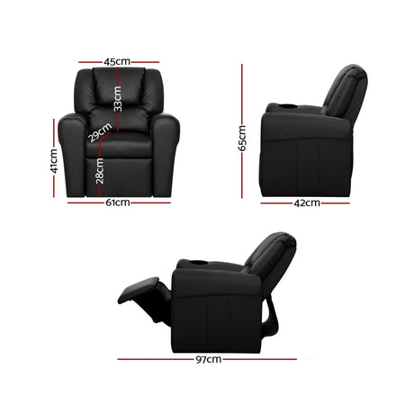 Keezi Kids Recliner Chair PU Leather Sofa Lounge Couch Children Armchair Black