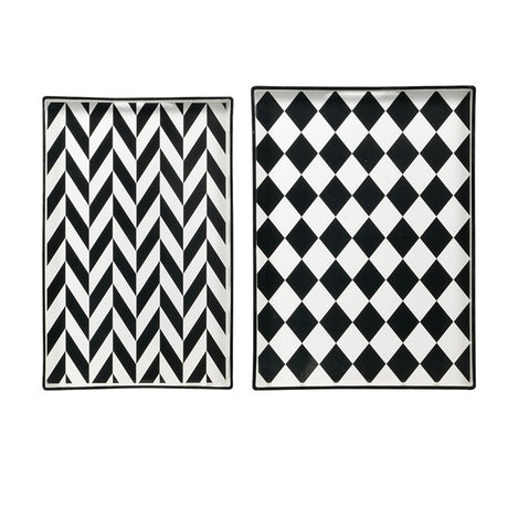 Set 2 Marble Patterned Rectangular Trays 48cm