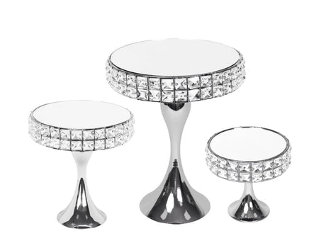 Set 3 Diamond Style Mirror Cake Stand 39cm
