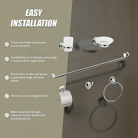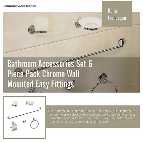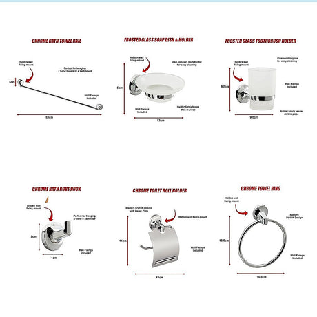 Bathroom Accessories Set 6 Piece Pack Chrome Wall Mounted Easy Fittings