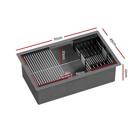 Cefito Kitchen Sink 70X45CM Stainless Steel Single Bowl Drain Rack Basket Black