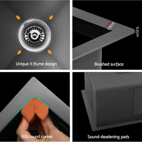 Cefito Kitchen Sink 81X45CM Stainless Steel Single Bowl Drain Rack Basket Black