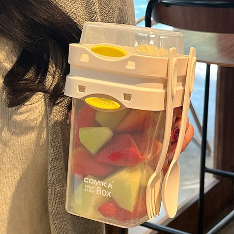 Yellow Portable Salad & Breakfast Cup On-the-Go - Dual Compartment Container with Spork