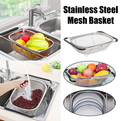 Stainless Steel Telescopic Sink Basket Multi Purpose Fruit Vegetable Strainer
