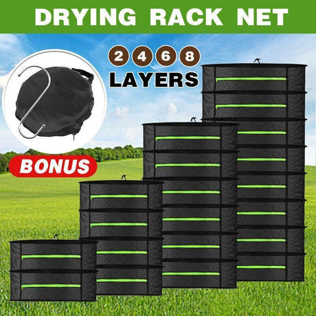 2-8 Tier Drying Net Large Shelf Hydroponic Hanging Grow Herb Plant Dry - 6 Layers