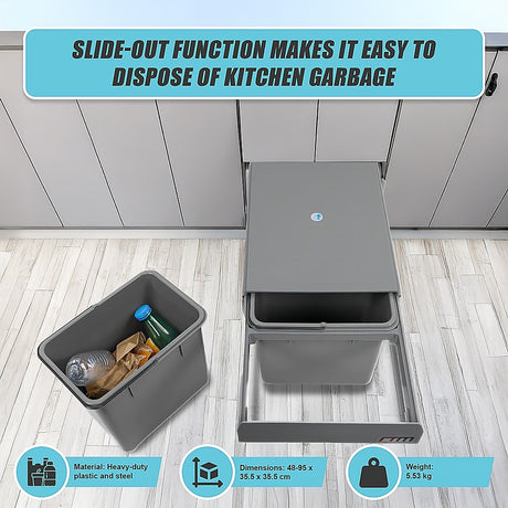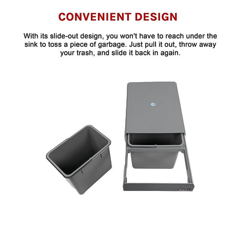 2x 15L Pull Out Trash Bin Dual Kitchen Garbage Waste Basket Cabinet Bin