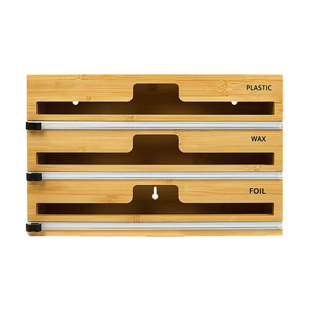 3 Grids Bamboo Food Wrap Dispenser Cutter Foil Cling Film Storage Holder Box Kitchen