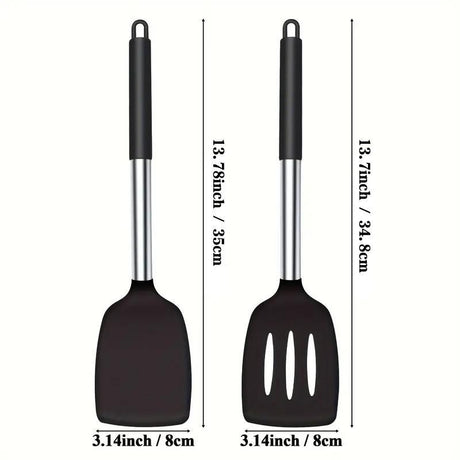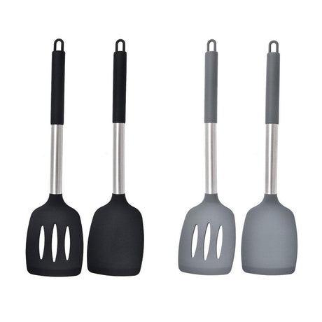 2pcs Silicone Cooking Utensils Stir Fry Spatula Kitchen Tools Non Stick Cookware - Grey