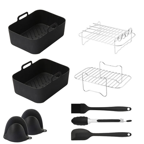 9-Piece Air Fryer Accessories Set - Silicone Liners, Grill Racks, Cooking Tools