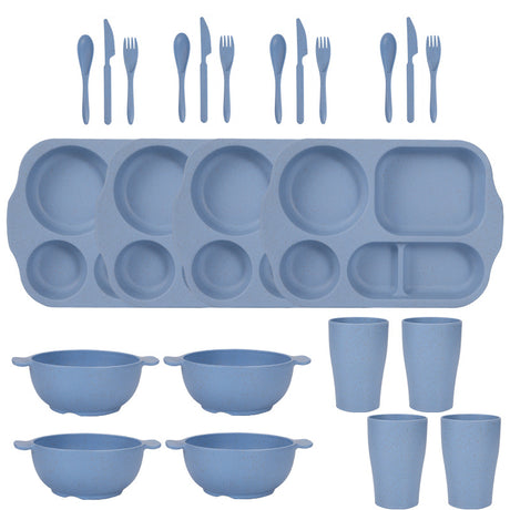 Blue Durable Eco-Friendly Wheat Straw Dinnerware Set - 24 Pieces with Plates, Bowls, Cups & Cutlery
