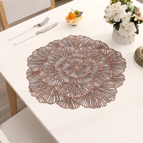 Bronze Color Elegant Floral PVC Placemats - Set of 8, Durable & Stylish Table Mats (38cm)