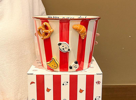 Charming Striped Ceramic Instant Noodle Bowl with 3D Accents & Happy every day! Message(red)