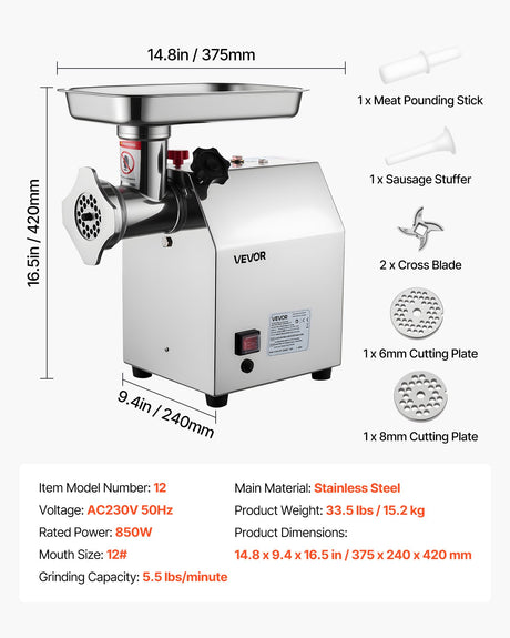VEVOR Commercial Electric Meat Grinder 5.5 Lbs/Min Sausage Stuffer Maker Kitchen