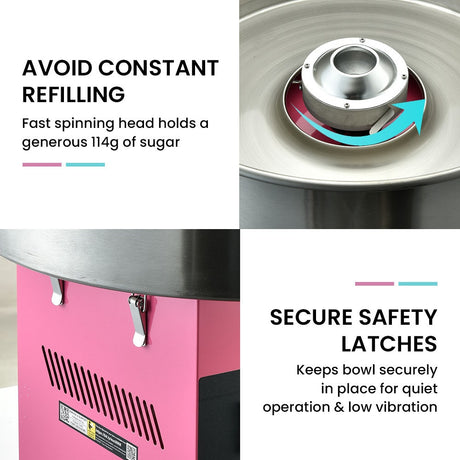 EUROCHEF Commercial Fairy Floss Cotton Candy Maker Machine Bubble Cover 52cm