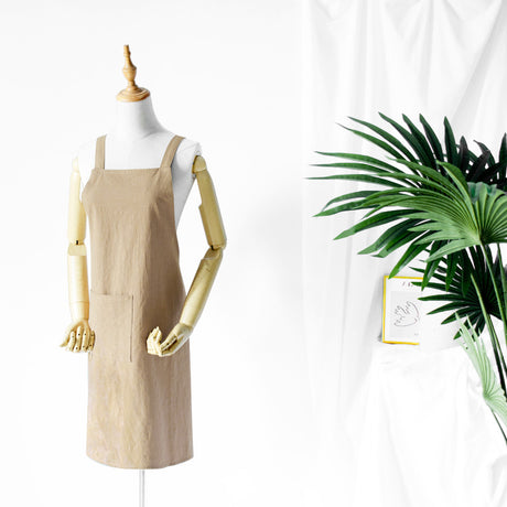 Khaki Cotton Linen H-Back Apron - Solid Color Kitchen Cooking Apron with Pocket